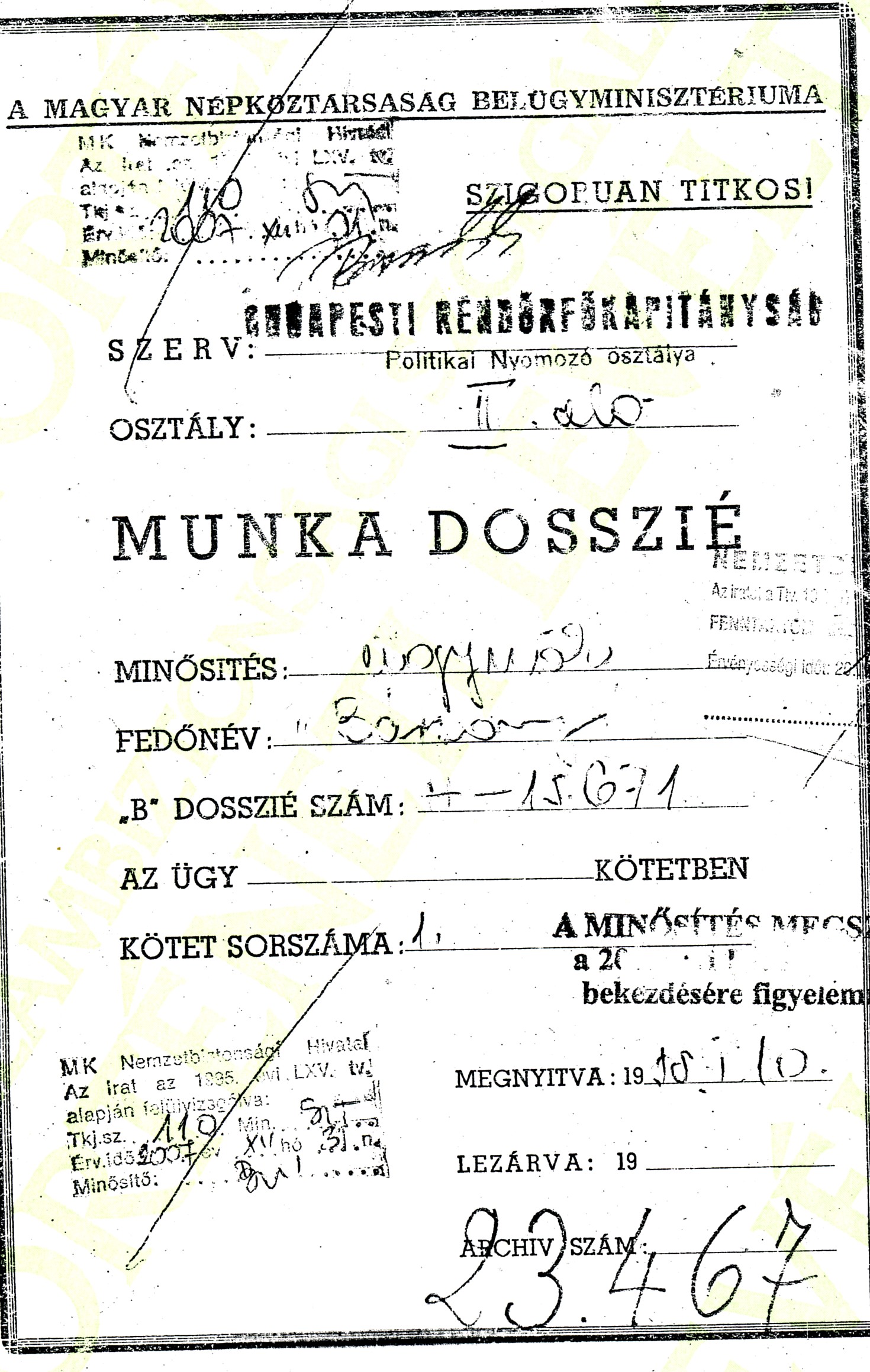 (1969-ben ismét beszervezésre javasolta a BM III/I. Csoportfőnökség)