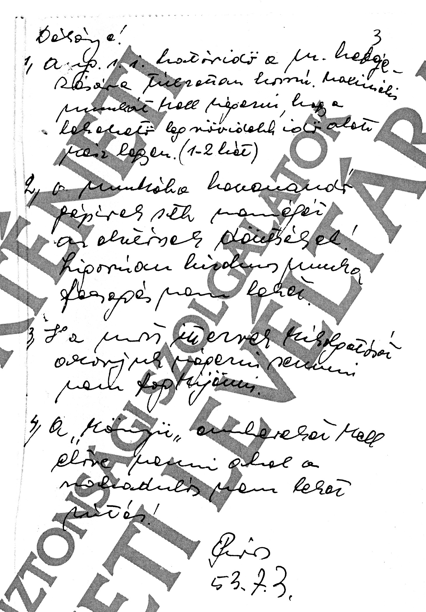 2., A munkába bevonandó gépírók, stb. személyét az elvtársak döntsék el! Szigorúan bizalmas munka, fecsegés nem lehet.